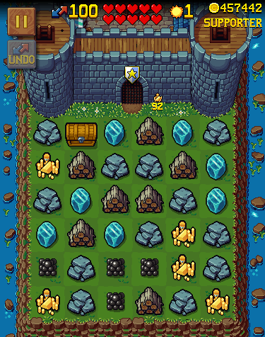 You have 100 swaps on day 1. The castle is closed every day after that. How long can it survive? Also only 100 gold treasure exists on this level. After that gold treasure won't drop in anymore.